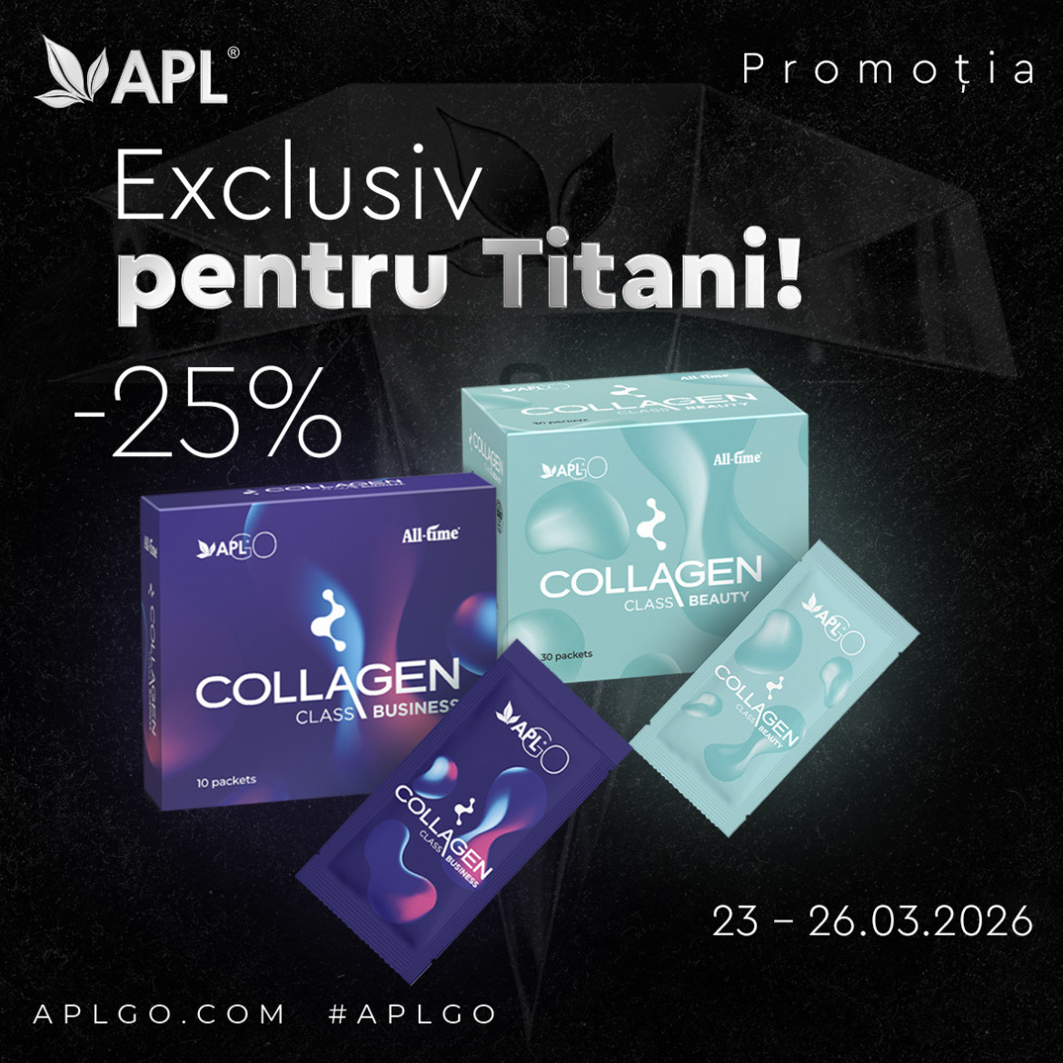 Titani, o ofertă exclusivă pentru dvs.! Collagen Beauty și Collagen Business pentru fermitate și strălucire cu o super reducere de 25%. Consumă zilnic produse de înfrumusețare și prelungește tinerețea articulațiilor și frumusețea pielii tale!